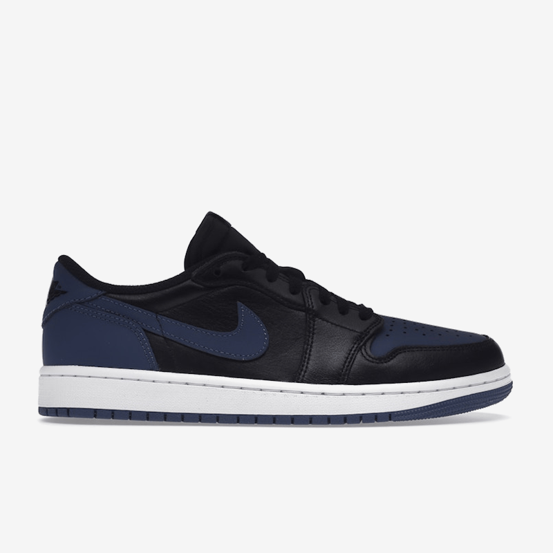 The Air Jordan 1 Low Mystic Navy combines timeless style with a modern touch. Featuring a smooth leather upper in black and Mystic Navy, this colorway mirrors the iconic 1985 Air Jordan 1 with its classic color blocking.
